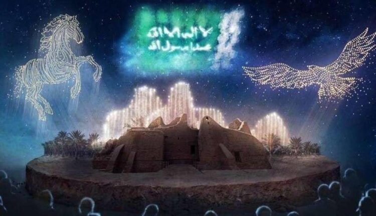 الألعاب النارية وطائرات الدرونز تضيء سماء الرياض احتفاءً بيوم التأسيس