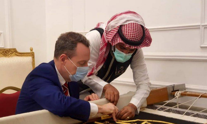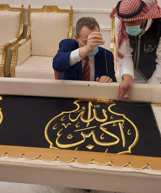 القنصل العام البريطاني يشارك في حياكة كسوة الكعبة
