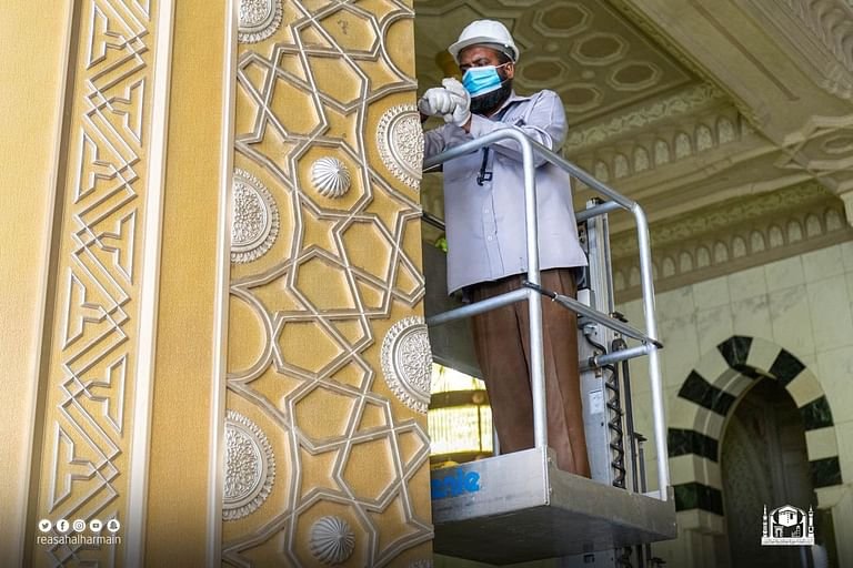 واختتم حديثه بالقول: هذه الأعمال تجري بإشراف وتنظيم من الإدارة العامة للتشغيل والصيانة التابعة لوكالة الرئاسة للشؤون الفنية والتشغيلية والصيانة وإدارة المرافق وبمتابعة مستمرة من قبل وكيل الرئيس العام للشؤون الفنية والتشغيلية والصيانة وإدارةِ المرافق المهندس سلطان بن عاطي القرشي، وتنفيذاً لتوجيهات الرئيس العام لشؤون المسجد الحرام والمسجد النبوي الشيخ الدكتور عبدالرحمن بن عبدالعزيز السديس؛ تحقيقاً لتطلعات القيادة الرشيدة في بذل كل ما من شأنه خدمة الحرمين الشريفين وقاصديهما.