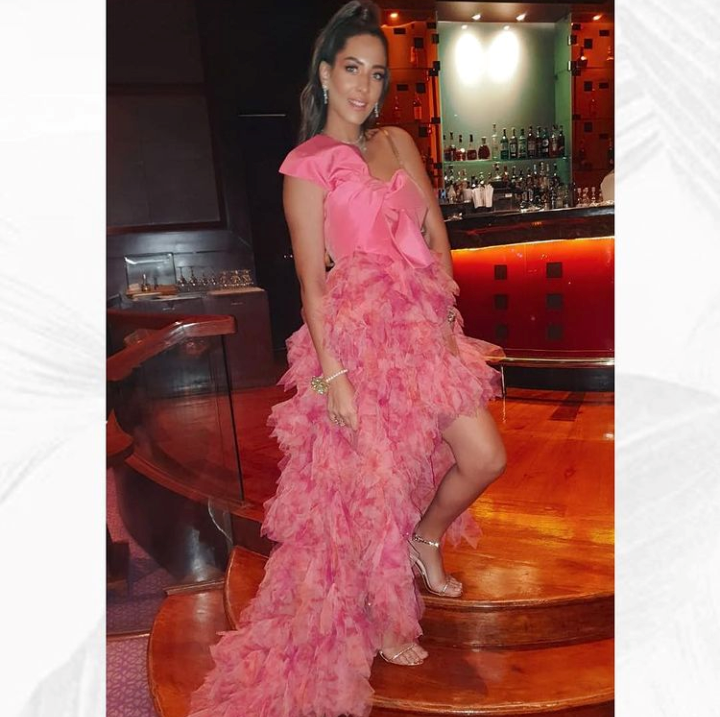 تألقت شاهندة حجازي بفُستان وردي طويل من جانب واحد تكسوه تدرجات من التول في اتجاه الذيل بشكل مُفعم بالأنوثة والأناقة.