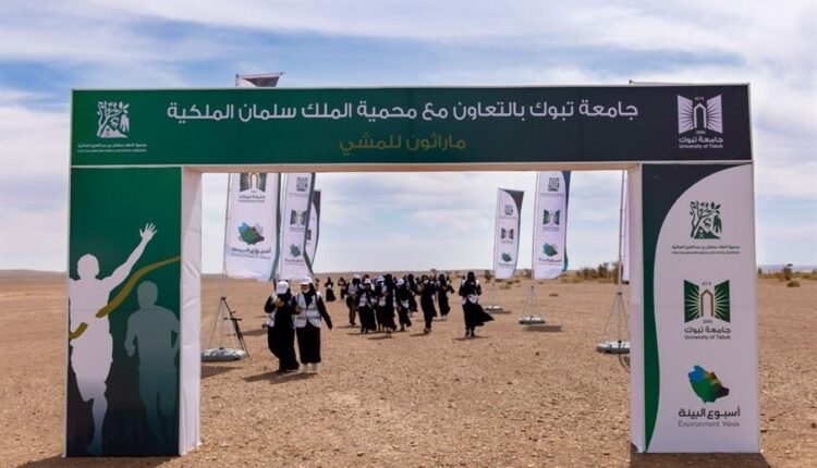 فعلت هيئة تطوير محمية الملك سلمان بن عبدالعزيز الملكية وجامعة تبوك أسبوع البيئة بتبوك تحت شعار “بيئتنا مسؤوليتنا” من خلال مارثون مشي في أراضي المحمية بمشاركة أكثر من 200 مشارك من طلاب جامعة تبوك ومنسوبيها ومنسوبي هيئة تطوير محمية الملك سلمان وبحضور الأمن البيئي، واشتمل التفعيل على حملة تصحيح بيئي وإزالة مخلفات ونفايات غطت مساحة 15 كيلو متراً مربعاً من المحمية.